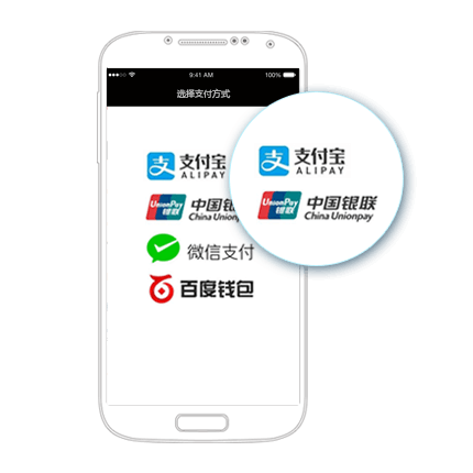 彩虹易支付聚合支付平台,为iOS/Android原生/H5 App提供支付解决方案:支持微信支付、支付宝支付、银联手机支付、百度钱包等。
